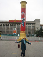 For the 60th anniversary of China, they have added 56 pillars to the square. Each pillar represents the 56 regions of China--they are all folk dancers from those regions.